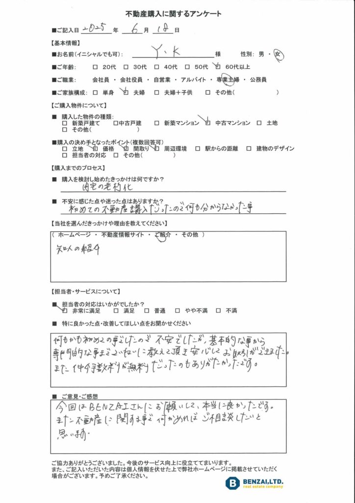 今回はBENZAIさんにお願いして本当に良かったです。また不動産に関することで何かあればご相談したいと思います。