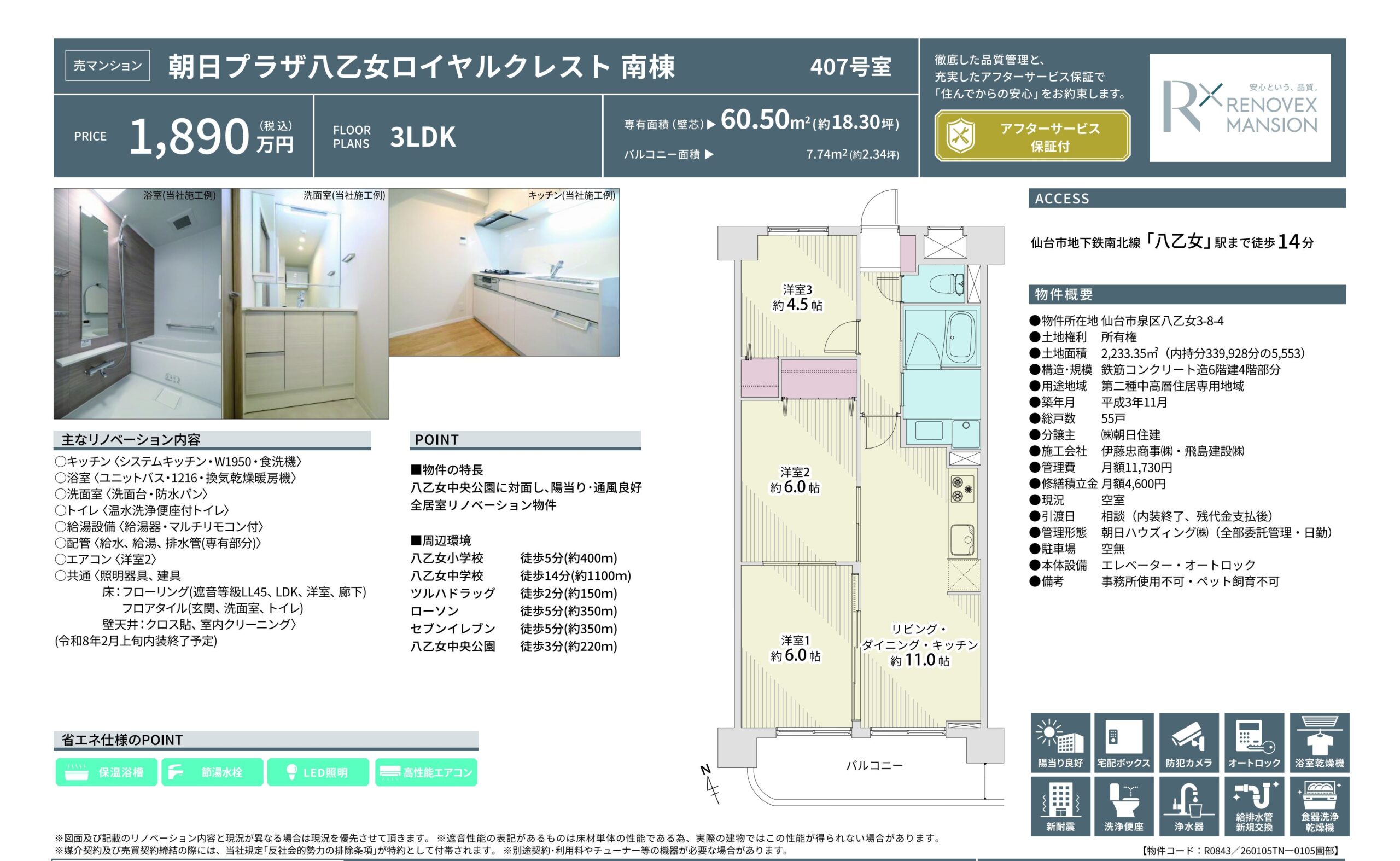 | 物件所在地 | 仙台市泉区八乙女1丁目 |