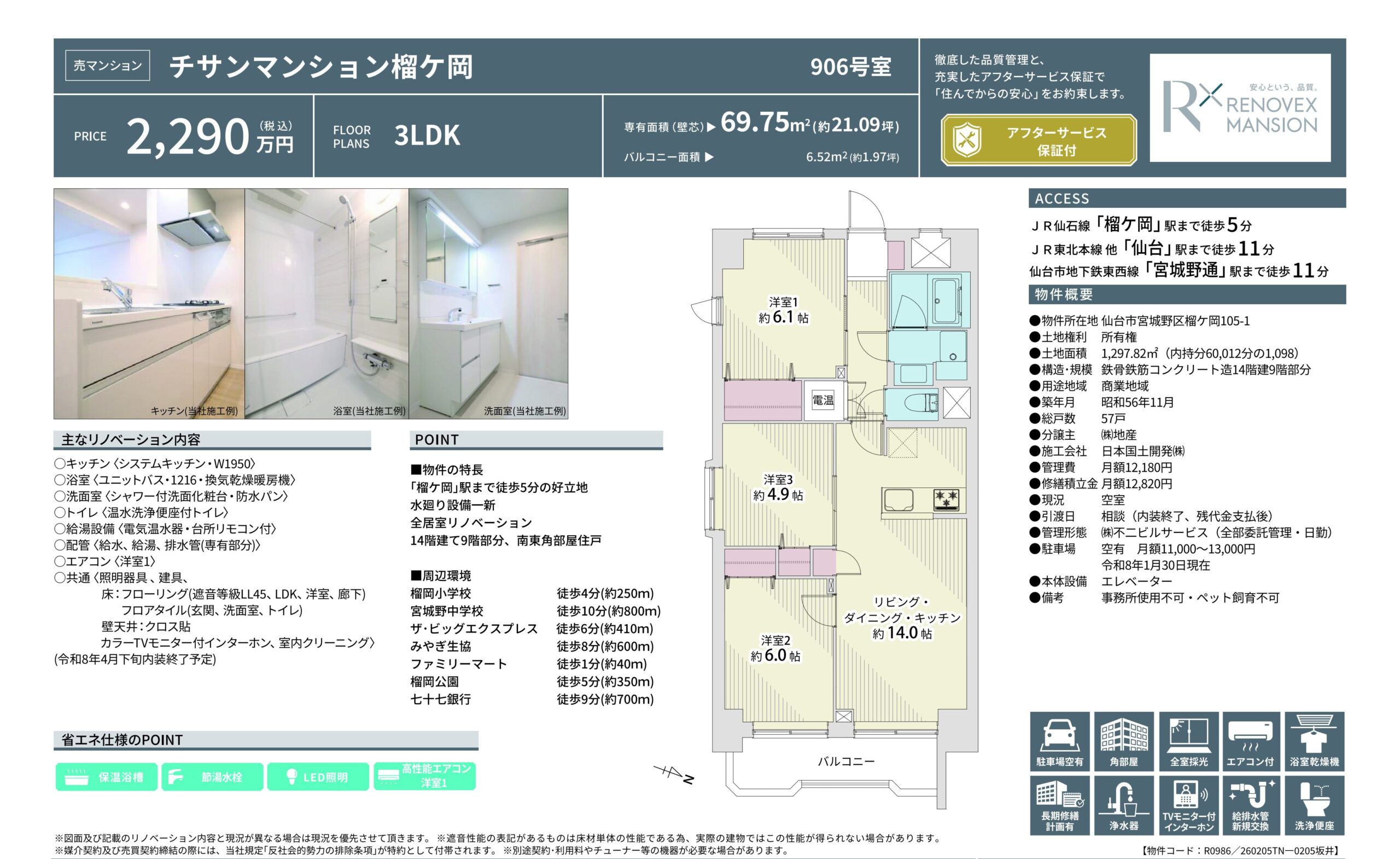 - NEW! チサンマンション榴ヶ岡 906号室