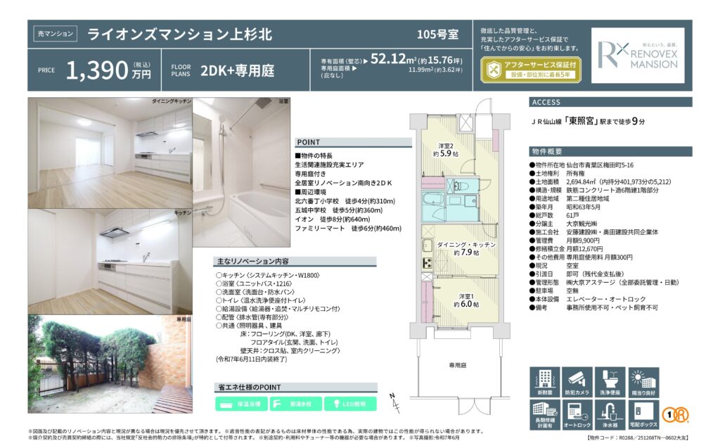 2DK(52.12㎡)+専用庭