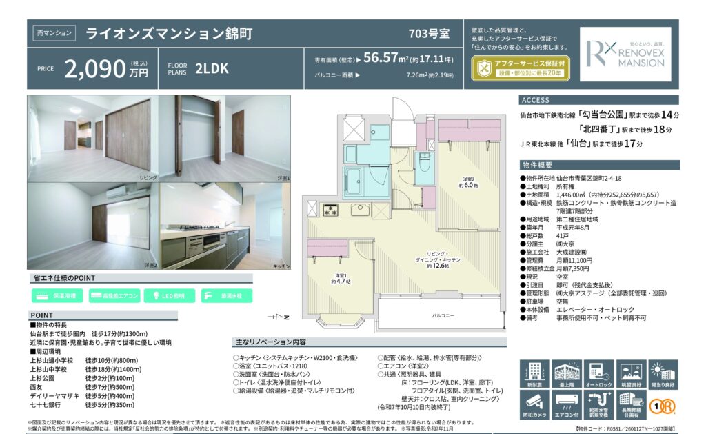 地下鉄南北線「勾当台」駅徒歩14分 地下鉄南北線「北四番丁」駅徒歩18分