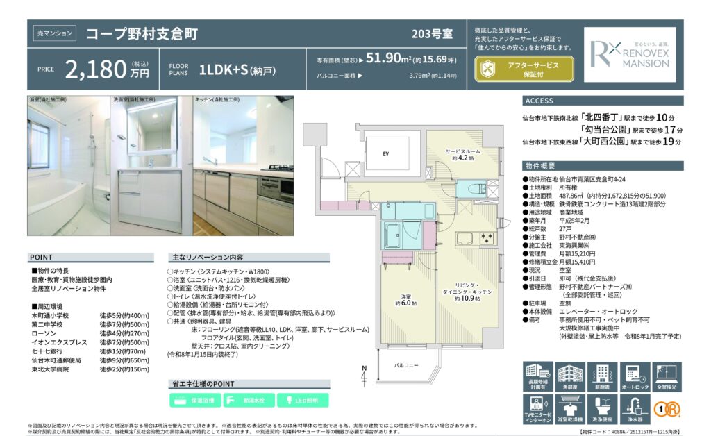 地下鉄南北線「北四番丁」駅徒歩10分 地下鉄南北線「勾当台」駅徒歩17分