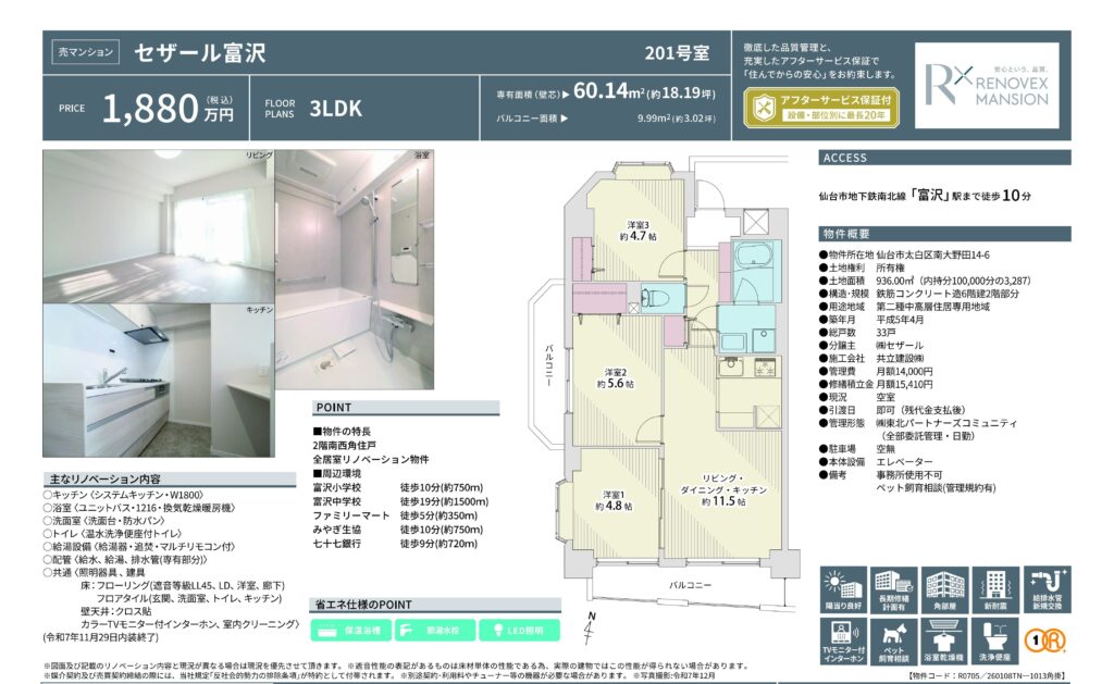 緊急値下げ!セザール富沢201号室2025.12.26