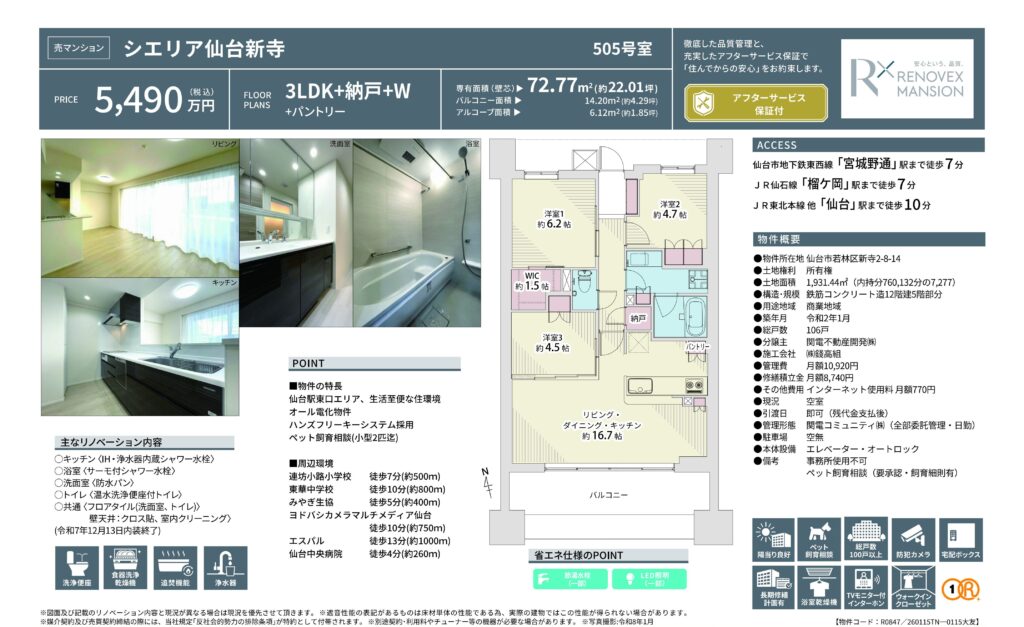地下鉄東西線「宮城野通」駅 徒歩7分