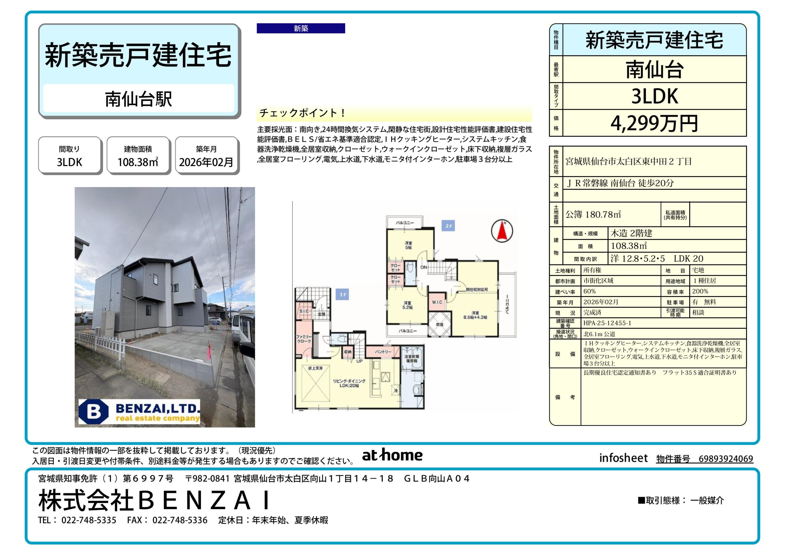 | 物件所在地 | 仙台市太白区東中田2丁目 |